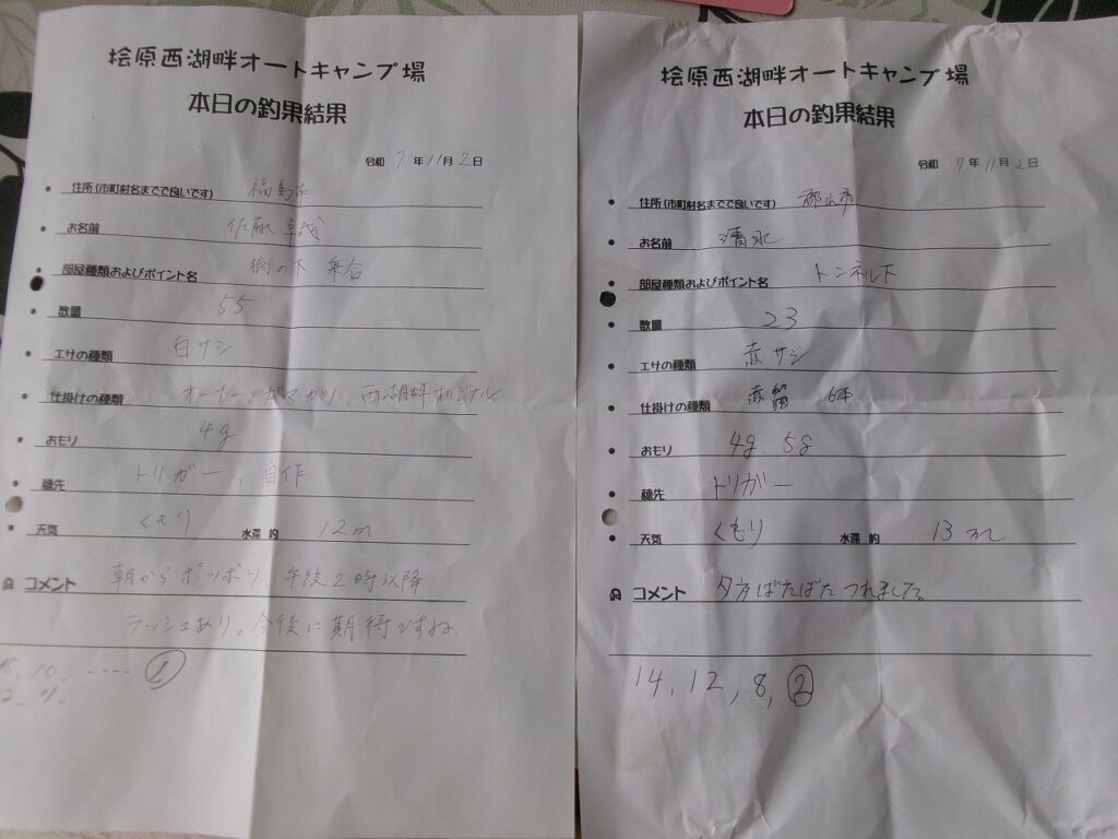 R7.11/2 本日のワカサギ釣果