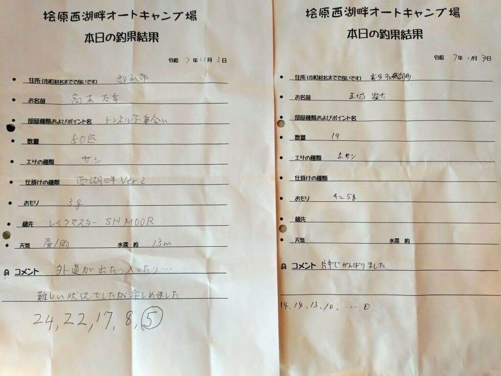 2025年11月4日 / 最終更新日時 : 2025年11月4日 hibaranishi ワカサギ R7.11/3 本日のワカサギ釣果 11月3日 月曜日 雨一時曇り★トンネル下ポイント(乗合船) 郡山市 高木様 50尾★橋の下ポイント(個室) 喜多方市 五十嵐様 19尾 解禁日からスタートした3連休最終日…復活ならず。両ポイント外道がウロウロ、仕掛けブチ切られたりオマツリしたりと大変だったようです💦橋の下ポイントは、エビ爆釣(笑)エビのかき揚げできますね!!!