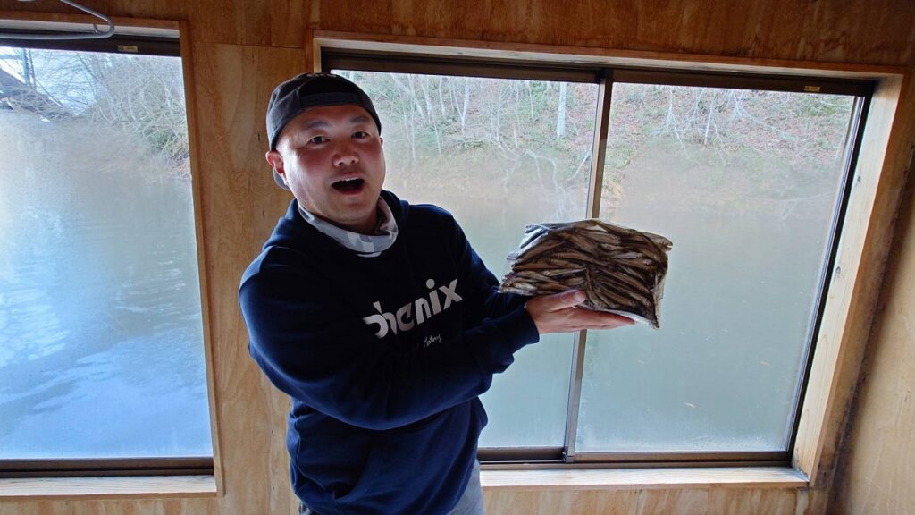 2025年11月30日 / 最終更新日時 : 2025年12月2日 hibaranishi ワカサギ R7.11/29 本日のワカサギ釣果 11月29日 土曜日 晴れ時々曇り★橋の下ポイント(貸切小屋) 郡山市 大澤様 143尾★トンネル下ポイント(乗合船) 西郷村 筧様 31尾※写真なし。 トンネル下ポイントは、思いのほかのびずじまいでしたねぇ😭久しぶりの橋の下ポイントは、それなりに良い結果となってくれました。両ポイント、型はまだまだでかいです!!!そのわりに、アタリが小さいので難しいのかも…💧