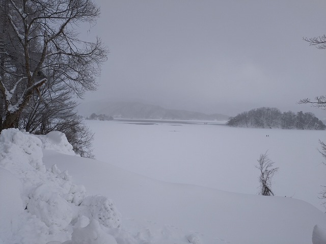 2026年1月23日 / 最終更新日時 : 2026年1月23日 hibaranishi ワカサギ R8.1/23 結氷状況part❸ 1月23日 金曜日 小雪もぉ~待ちきれない!!!…ということで、氷上の偵察隊出動しました☺月島から先はご覧の通り、まだ氷すら張っていない状態で波立ってます😭なので、月島手前まで行ってきました。歩くには問題ないとのことですが、踏み踏みしてモービル走って固めて…の作業を繰り返し、安全に解放できるように準備完了するまで、しばしお待ちを🐻