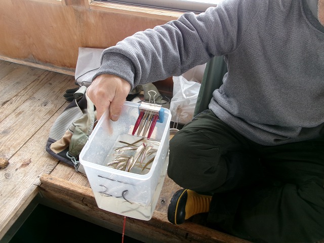2026年1月30日 / 最終更新日時 : 2026年1月31日 hibaranishi ワカサギ R8.1/30 本日のワカサギ釣果 1月30日 金曜日 晴れ(一時強風)★トンネル下ポイント(乗合船) 郡山市 宗形様 119尾★氷上マイテント 230尾くらい?? 本日より徒歩のみで氷上一部解禁となりました。何気に外道が多かったようで、リールをヤラれた方・ラインぶち切られた方などなど多数おりました。外道対策をしてお越しください(笑)初氷上の釣果は、あとからの情報もあり…正確に把握できない部分があったので230?210?160?…といたようです。場所により、当歳サイズメイン・半々と別れました。屋形船組は、ベタ底狙いの拾い釣りで何とか3桁になってくれました。 氷上マイテント。