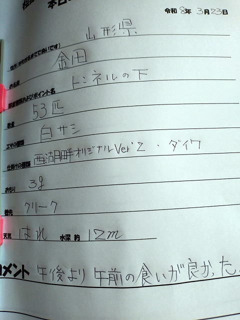 2026年3月23日 / 最終更新日時 : 2026年3月24日 hibaranishi ワカサギ R8.3/23 本日のワカサギ釣果 3月23日 月曜日 曇り時々晴れ★トンネル下ポイント(乗合船) 山形県 金田様 53尾 せっかくワカサギらしき魚影が来ても、外道到来と共に消え去っていく…今季の桧原湖はどぉしたものか😭